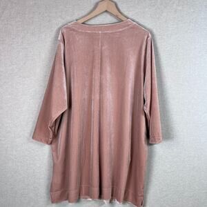 Lands End Womens Pink Velour Tunic Top Size 3X Vneck Stretch Velvet Shimmer