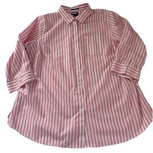 Lands' End Women's Pink & White Striped No Iron 3/4Sleeve Button Up Shirt Sz 18W