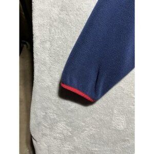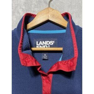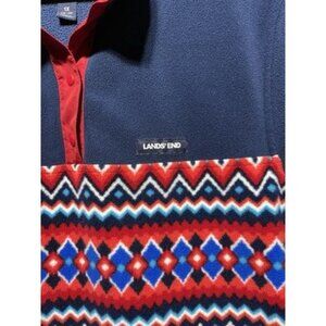 Lands End Womens Plus 1X Fleece Snap-Neck Pullover Red/Navy Chevron Fairisle