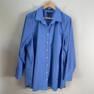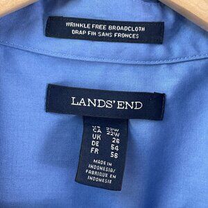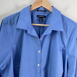 Lands End Womens Plus 22W Blue Wrinkle Free Broadcloth Button Up Shirt Blouse