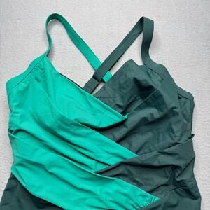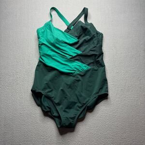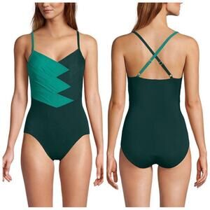 Land's End Women's Plus Green SlenderSuit Pleated Low Leg One Piece Swimsuit - Size 16W. In excellent preowned condition - only worn one time. Practically brand new. Retails for $165.