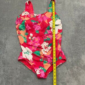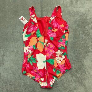 Lands End Womens Plus Size 22W 2X Red Floral 1 Piece Swimsuit