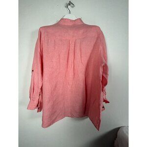 Lands End Womens Plus Size 2X 20W-22W Pink Linen Button-Down Shirt Roll Sleeves