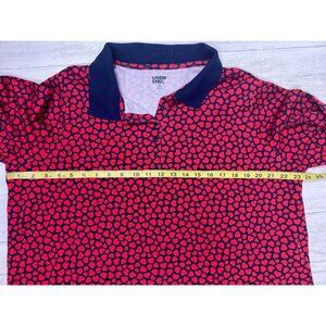 Lands End Womens Plus Size Red & Navy Heart Print Polo Shirt 2X Cotton Blend 3/4