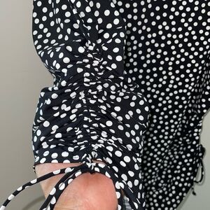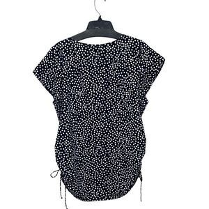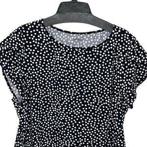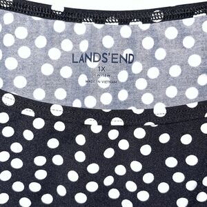 Lands' End Womens Polka Dot Short Sleeve Cinched Blouse Black White Size 1X