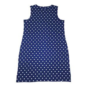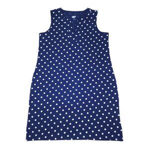 Lands End Womens Polka Dot Sleeveless Cotton Shift Dress Navy White Size M
