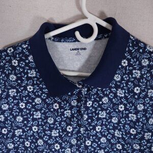 Lands End Womens Polo Shirt 3X Blue Floral Print Short Sleeve Golf Preppy Casual