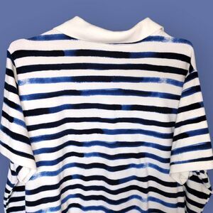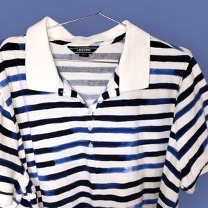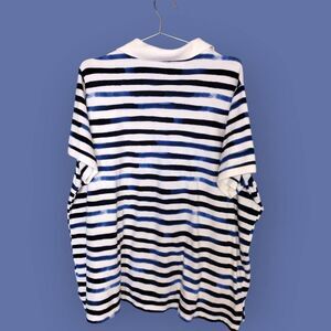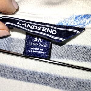 Lands End Womens Polo Size 3X Short Sleeve Traditional Fit Tee Striped Blue Golf