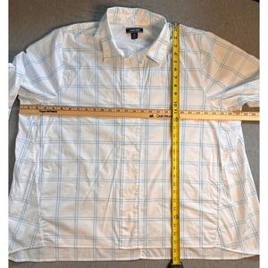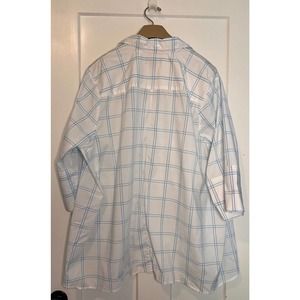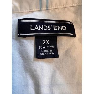 Lands End Womens Popover Top White Windowpane 3/4 Sleeve Collar Stretch Plus 2X