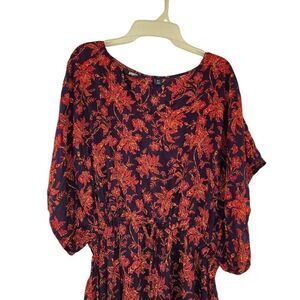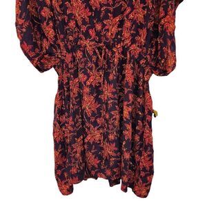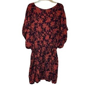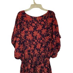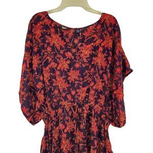 Lands' End Women's Purple/Navy/Red Modal Floral V-Neck Drawstring Swim Cover Up Dress NEW NWT sz M/L