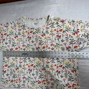 Lands' End Women's Quilted Crewneck Top XL 3/4 Sleeve Pullover Ivory Floral
