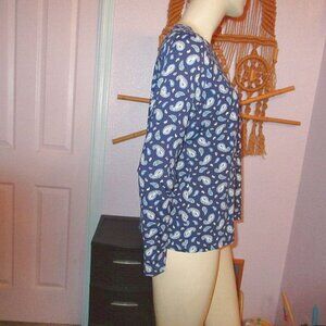 Blue paisley long-sleeves crew-neck.