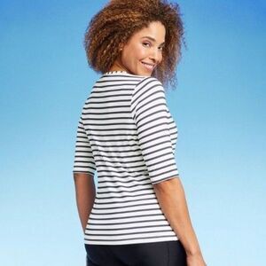 Lands' End - Women's Rashguard Swim Top Navy Blue Wh Navy Blue/White