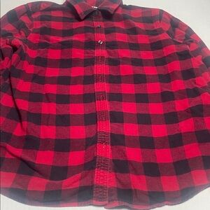 Lands End Women’s Red Black Plaid Flannel Button Down Shirt Size 16P