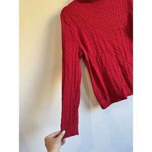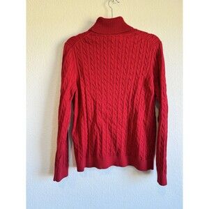 Lands' End Women's Red Chunky Knit Turtleneck Sweater Long Sleeve Pullover Large