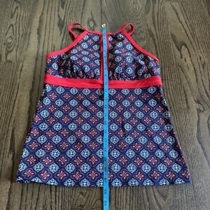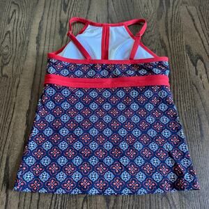Lands End Womens Red White Blue Geo Floral Tankini Swim Suit Top Size 4 Small