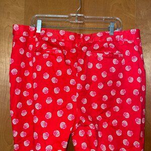 Lands End Womens Red White Print Mid Rise Pants Size 18