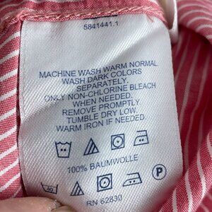 Lands End Womens Red & White Striped Cotton Button-UpShirt Size L 3840