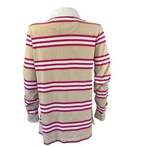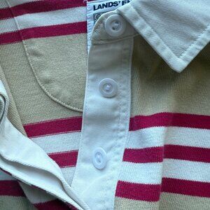 Lands' End Women's Rugby Shirt M/T Pink Beige Stripe Japan Tag G19 513230