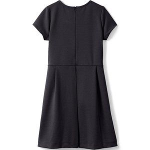 Styled with a single box pleat, this dress is made from ponté, a soft knit fabric that drapes beautifully. You will look neat all school day long.