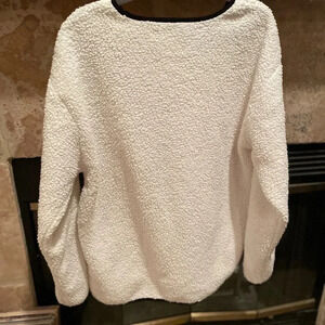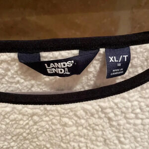 Lands End Women’s Sherpa/Fleece Lined Pullover Crew White Navy XL Tall Nautical