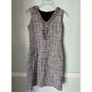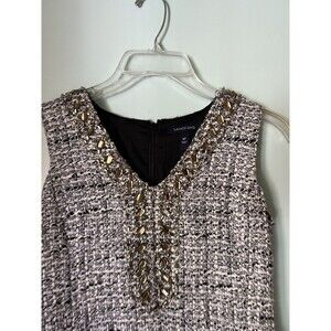 Lands End Womens Size 0P White Black Tweed Crystal Beaded Neck Dress Sleeveless
