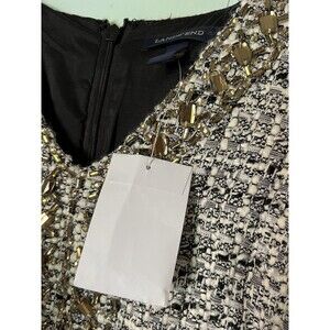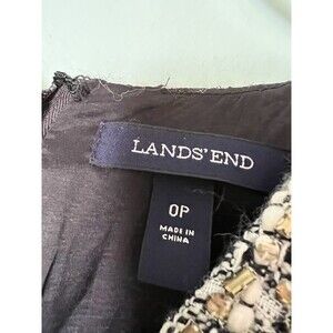 This beautiful Lands' End dress is the perfect addition to any wardrobe. The black and white tweed fabric gives the dress a classic and sophisticated look, while the crystal and beaded neckline adds a touch of elegance. The sleeveless design and knee length make it suitable for any occasion, whether it's a business meeting or a night out. The dress features a V-neckline and a zip closure for added comfort and style. The wool blend material and pockets make it functional for colder seasons like winter and fall, but can also be worn in the spring. Available in size 0 petite, this shift style dress is perfect for women who want to add a 90s theme to their wardrobe.