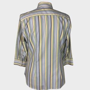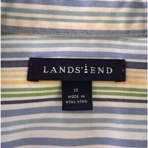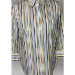 Lands' End Womens Size 10 Striped Button Front Blouse 3/4 Sleeve