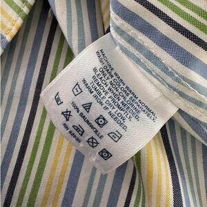 Add a pop of color to your wardrobe with this Lands' End blouse! The blue, green, and yellow stripes are sure to brighten your day.