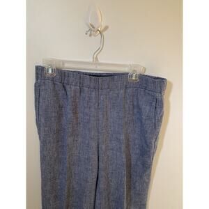 Lands End Womens Size 12P Pull-On Pants Mid Rise Wide Leg Linen Blend Blue