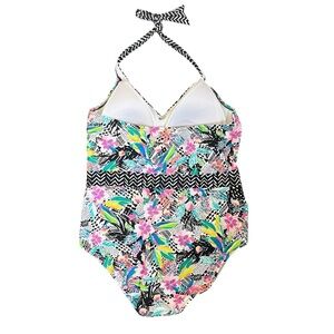 Lands’ End Women's Size 18 Perfect V Swimsuit One-Piece Tropical Floral Halter