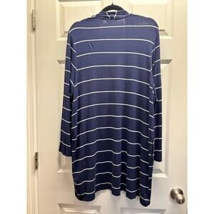 Lands' End Womens Size 1X Blue White Striped Open Front Stretch Cardigan Sweater