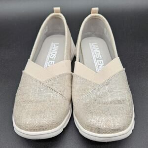 Lands End (Women's Size 6.5 B) Comfort Slip On Flat Shoes Silver Sparkle 508542