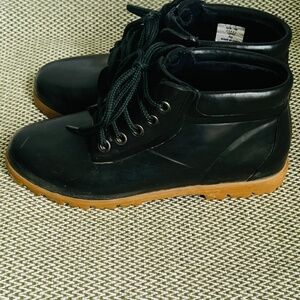 Lands End Women’s Black Vintage Rubber Duck Rain Ankle Boots Lace Up