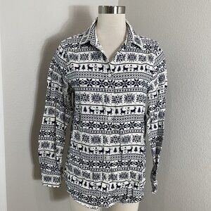 Lands End Womens Size 8 Fair Isle Flannel Button Up Shirt Reindeer Snowflake Top