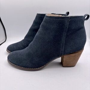 Lands End Women’s Size 8.5 Blue Faux Suede Boots Side Zip Mid Heel Preppy
