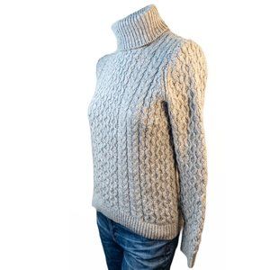 Lands End Womens Size XS Sweater Grey Cable Knit Turtleneck Long Sleeve Wool New
