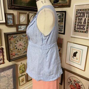 Lands End Womens Sleeveless Linen Blouse Size 14 Light Blue