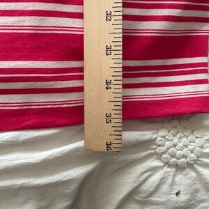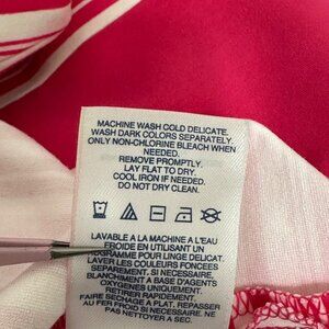 This sleeveless sheath dress by Lands' End combines a tailored silhouette with a vibrant pink and white stripe design, offering both style and comfort. Crafted with a blend of rayon, nylon, and spandex for a flattering fit. Ideal for formal or semi-formal settings.