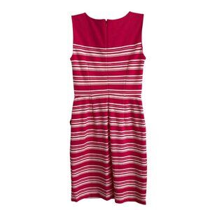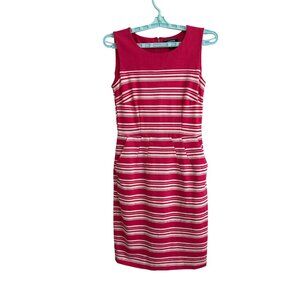 Lands End Womens Sleeveless Pink Striped Sheath Dress Size 2P Preppy Old Money