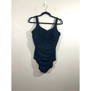 Lands End Womens SlenderSuit Carmela One Piece Swimsuit 16 Black Underwire NWOT