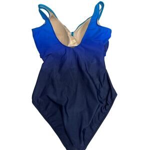 Lands End Women’s Slendersuit wrap One Piece Swimsuit Blue Ombré Size 12