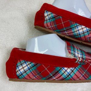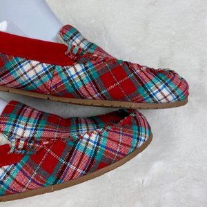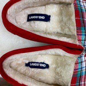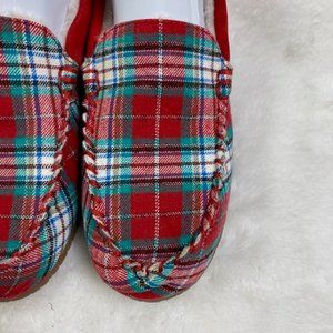 Lands' End Women's Soft Flannel Moccasin Slippers Plaid Red NWOT size 10