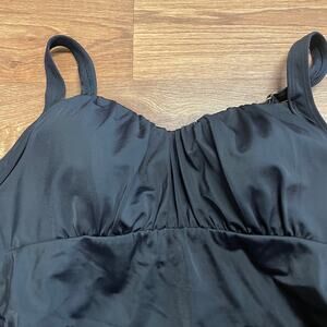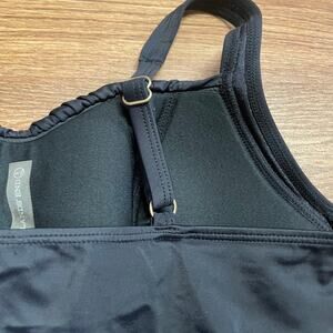 Lands End Womens Solid Black Tankini Swim Top Ruched Size 8 Built in Bra