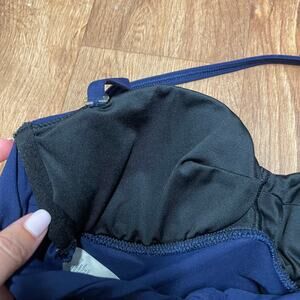 Lands End Womens Solid Blue Strapless Halter Tankini Swim Top XXS Molded Cups