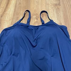 Lands End Womens Solid Navy Blue Tankini Swim Top Drape Banded 18DD Molded Cups. Size eighteen double d cup. New with tags.