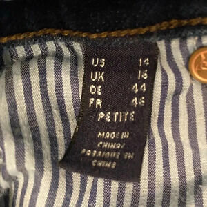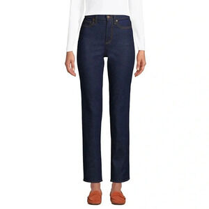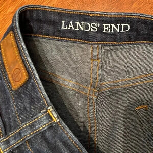 Lands’ End Women’s Straight Leg High-rise Stretch Dark Wash Blue Jeans 14P EUC