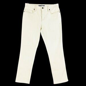 Lands' End Women's Stretch Mid Rise Straight Leg Cream Jeans Size 8 Zip/Button