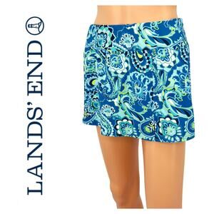 Lands' End Women's Swim Skirt Size 6 Blue Green Paisley Built-in Bikini NWOT