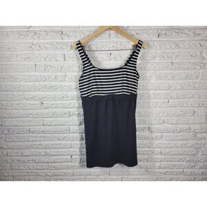 Lands End Womens Swim Top 16 Black Stripe Adjustable Wide Strap STR123E